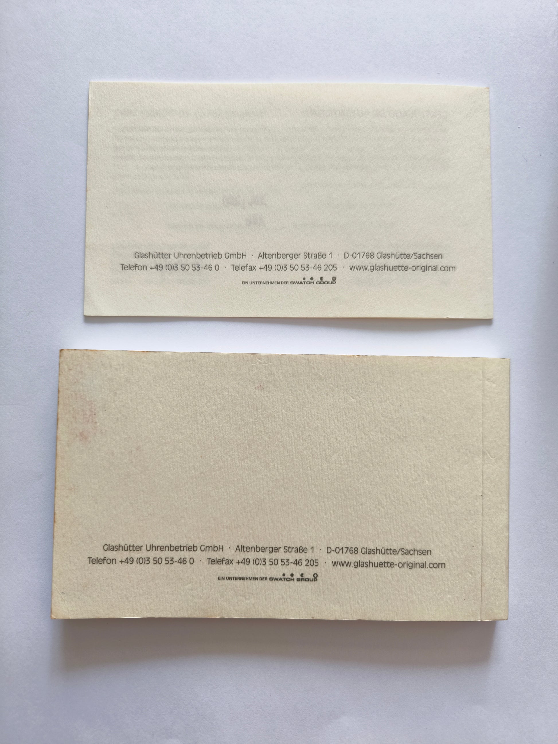 Glashutte Original PanoMaticDate PanoMaticLunar Watch Guarantee Warranty Certificate Card