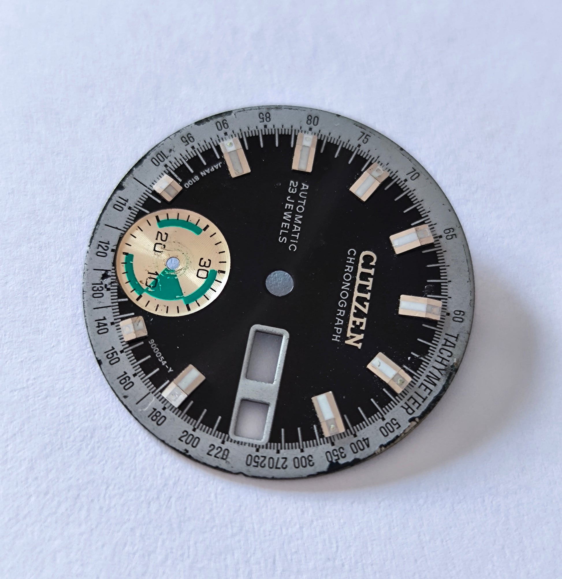 Perfect for: Citizen 8100A/8110A chronograph restoration projects, Citizen Bullhead dial replacement, collectors of vintage Citizen chronographs, vintage watch enthusiasts, or anyone seeking to restore the iconic black dial with gold/green sub-dial to their Citizen automatic chronograph timepiece.