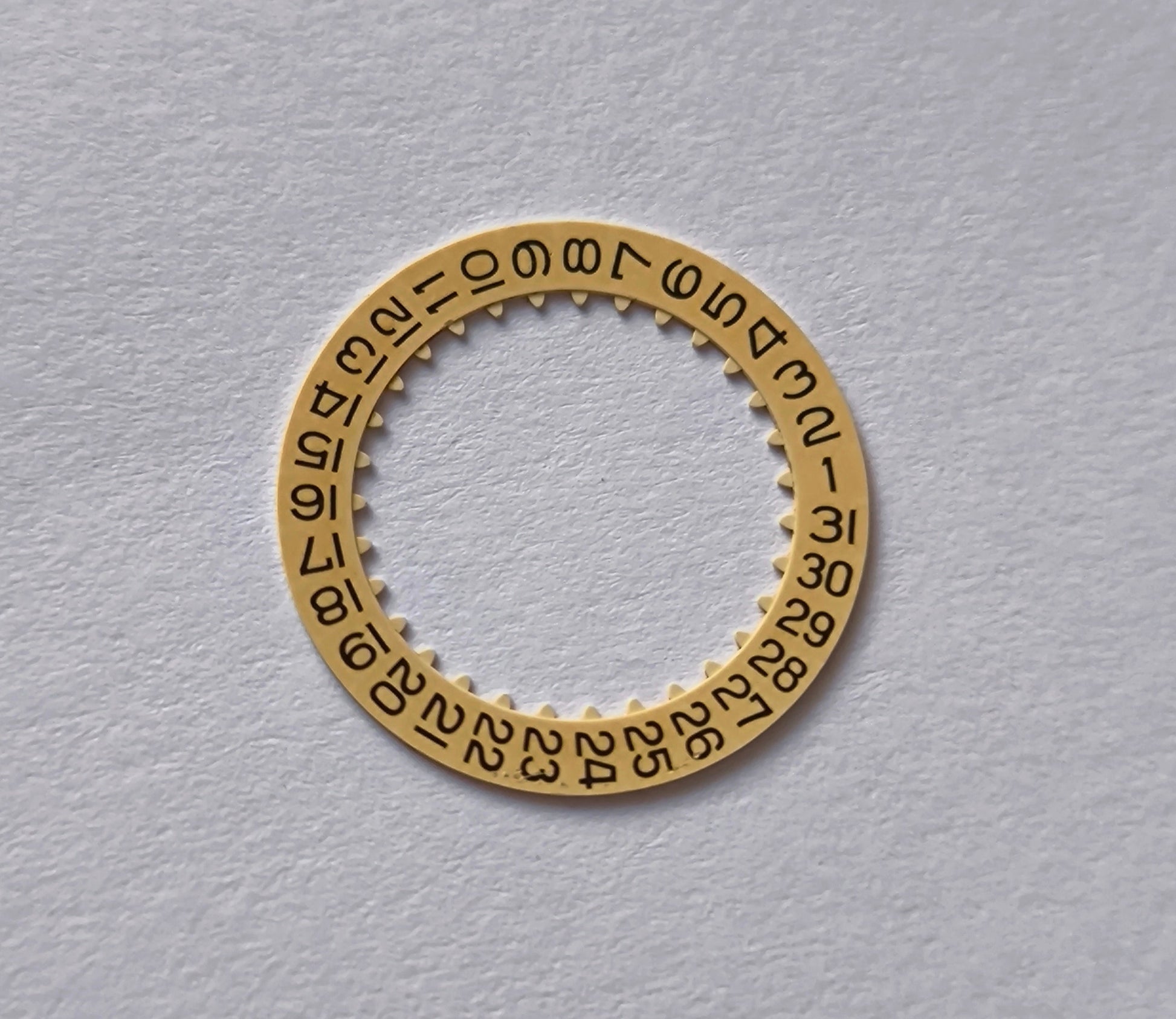 Ensure precise date display operation with this authentic OMEGA calendar date disc for multiple calibers. This essential component controls the date display mechanism, providing accurate date indication and reliable operation in OMEGA's automatic movements.
