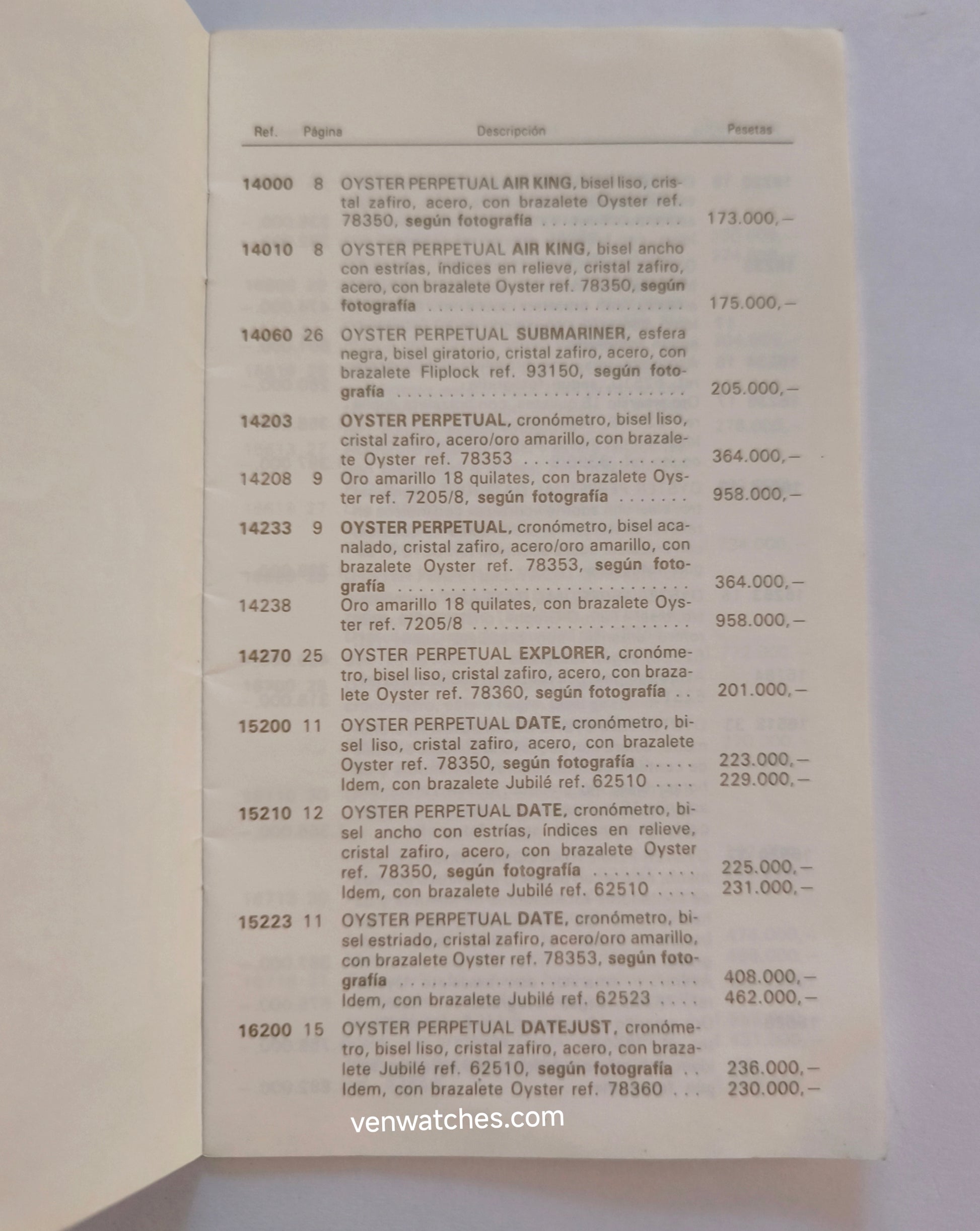 VINTAGE ROLEX PRICE LIST SPAIN 1993