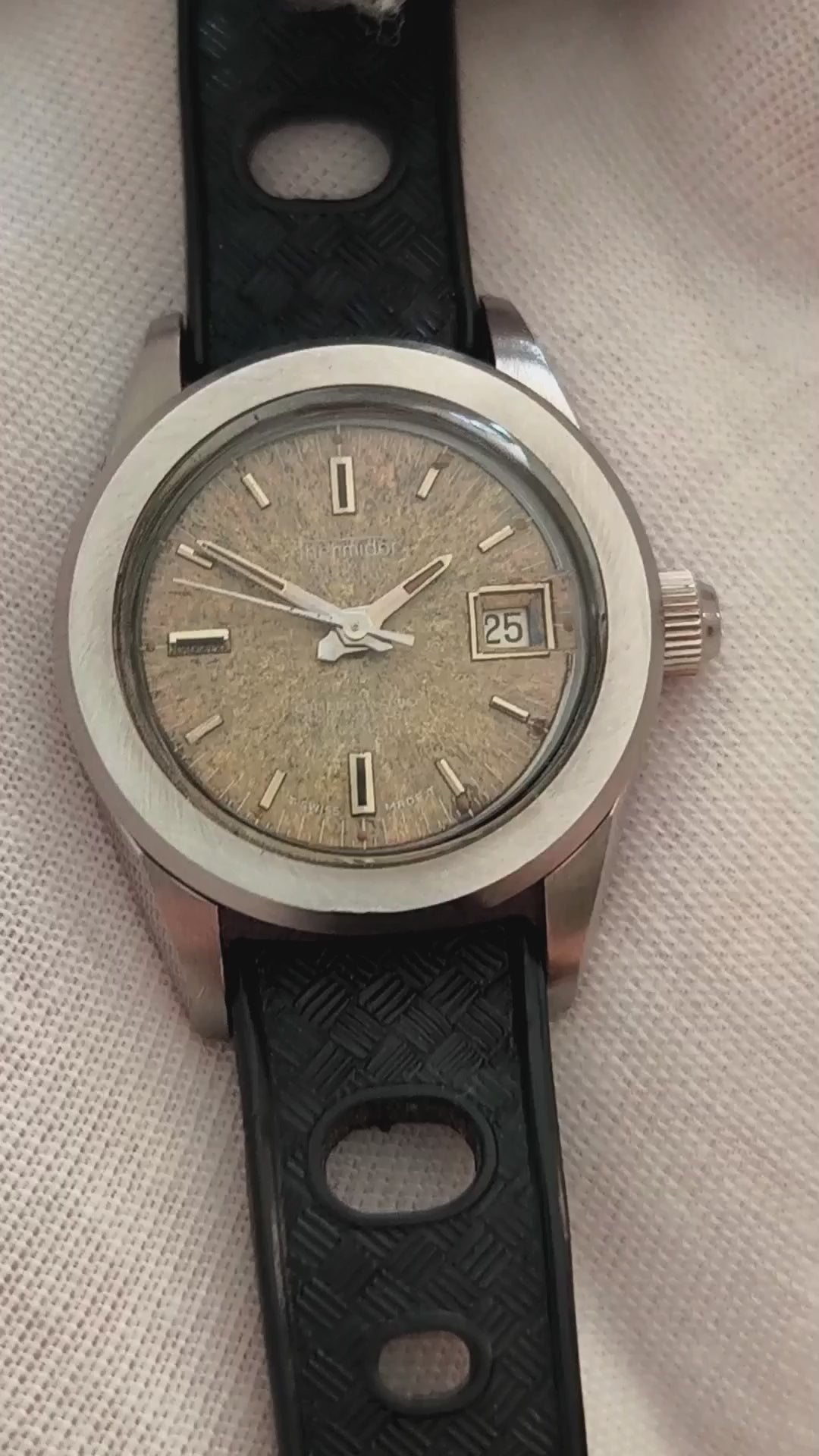 Perfect for: Vintage watch collectors, diving watch enthusiasts, those seeking unique tropical dial timepieces, women who appreciate smaller vintage proportions with professional diving capabilities, or anyone looking for an authentic piece of Swiss watchmaking history with irreplaceable character and serious water resistance.